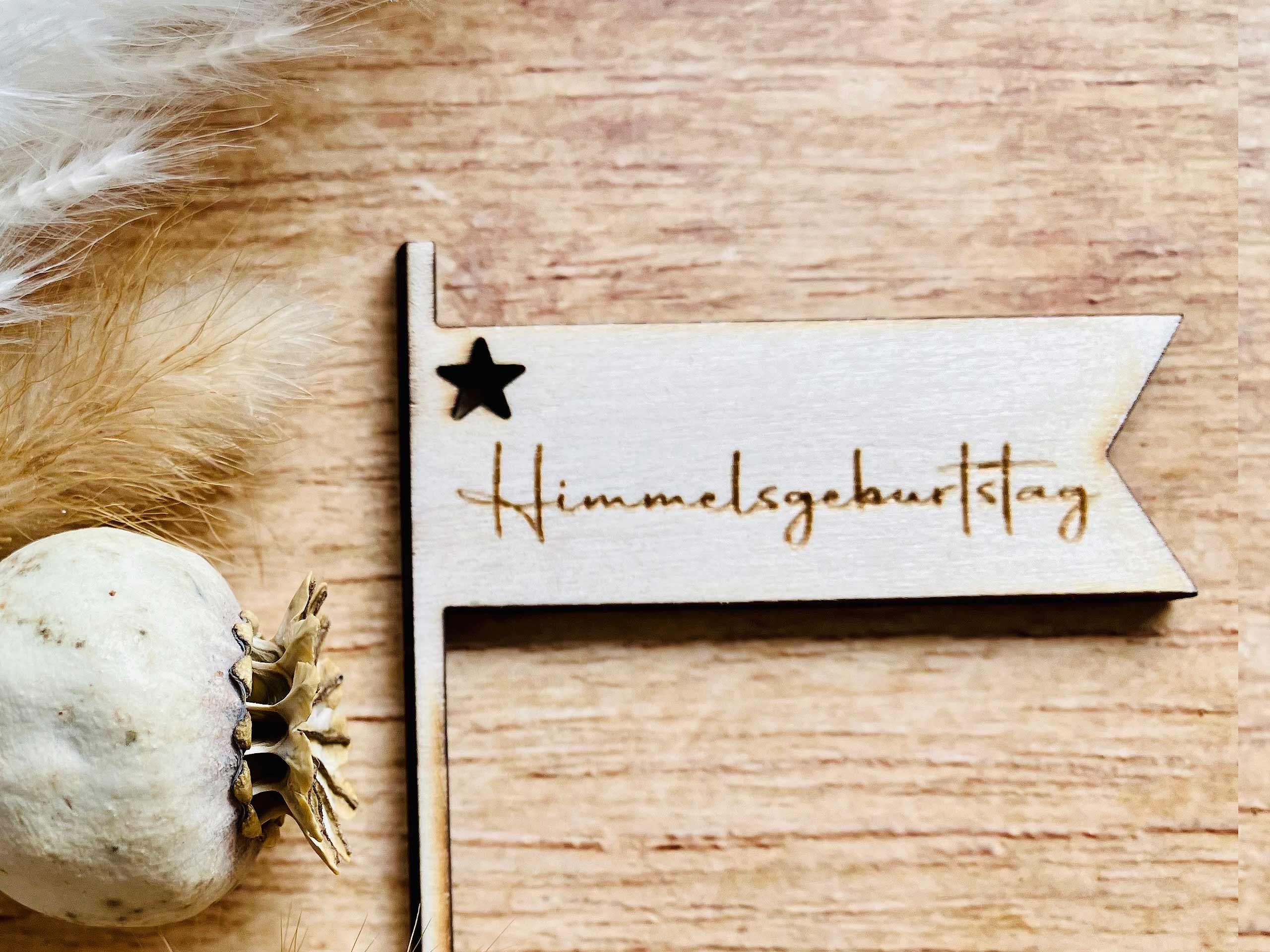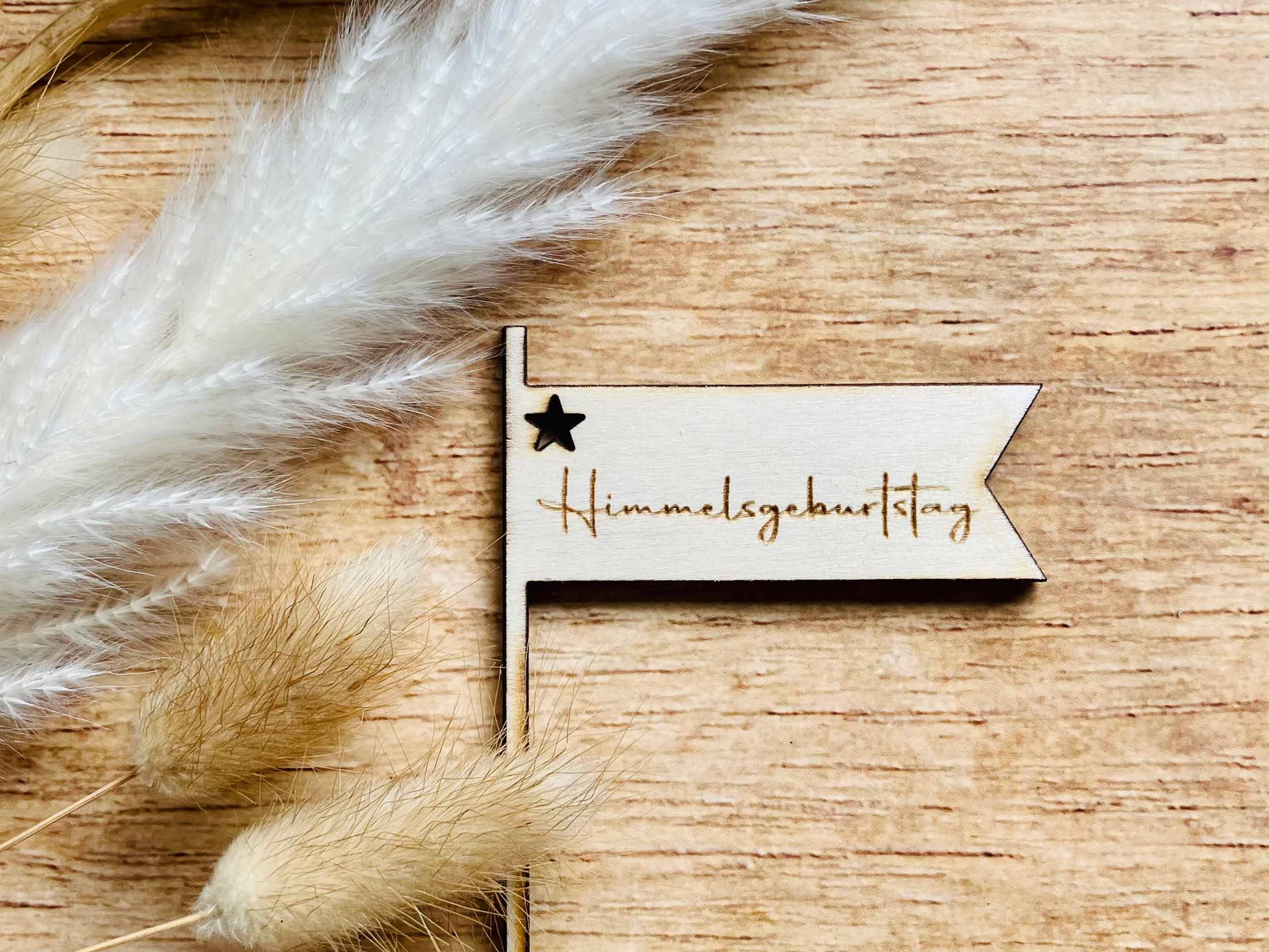 Unser Erinnerungswimpel „Himmelsgeburtstag“ gibt Ihrer Erinnerungstorte noch einen Hauch mehr.
